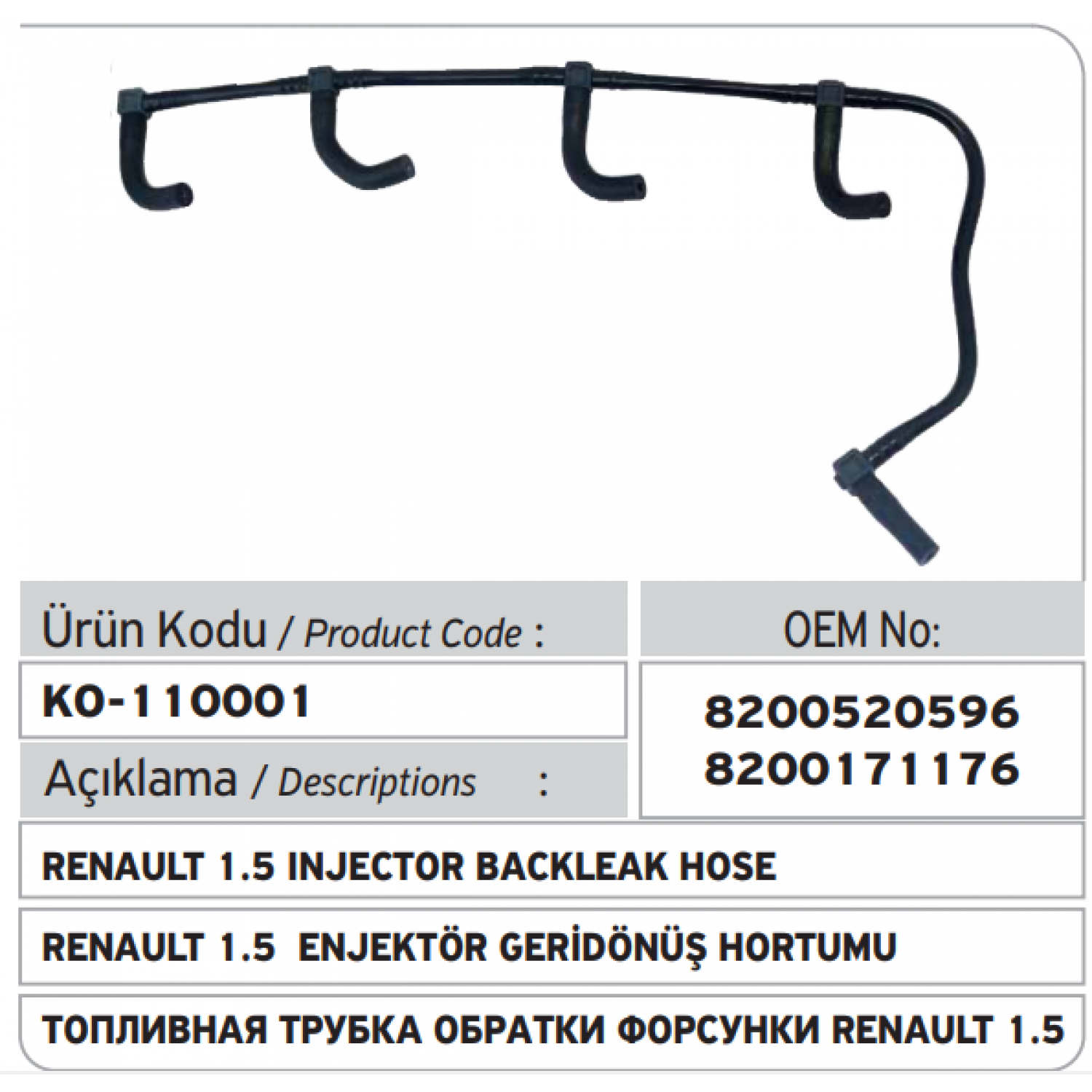 8200520596 8200171176 Renault - Dacia Geri Dönüş Hortum Seti